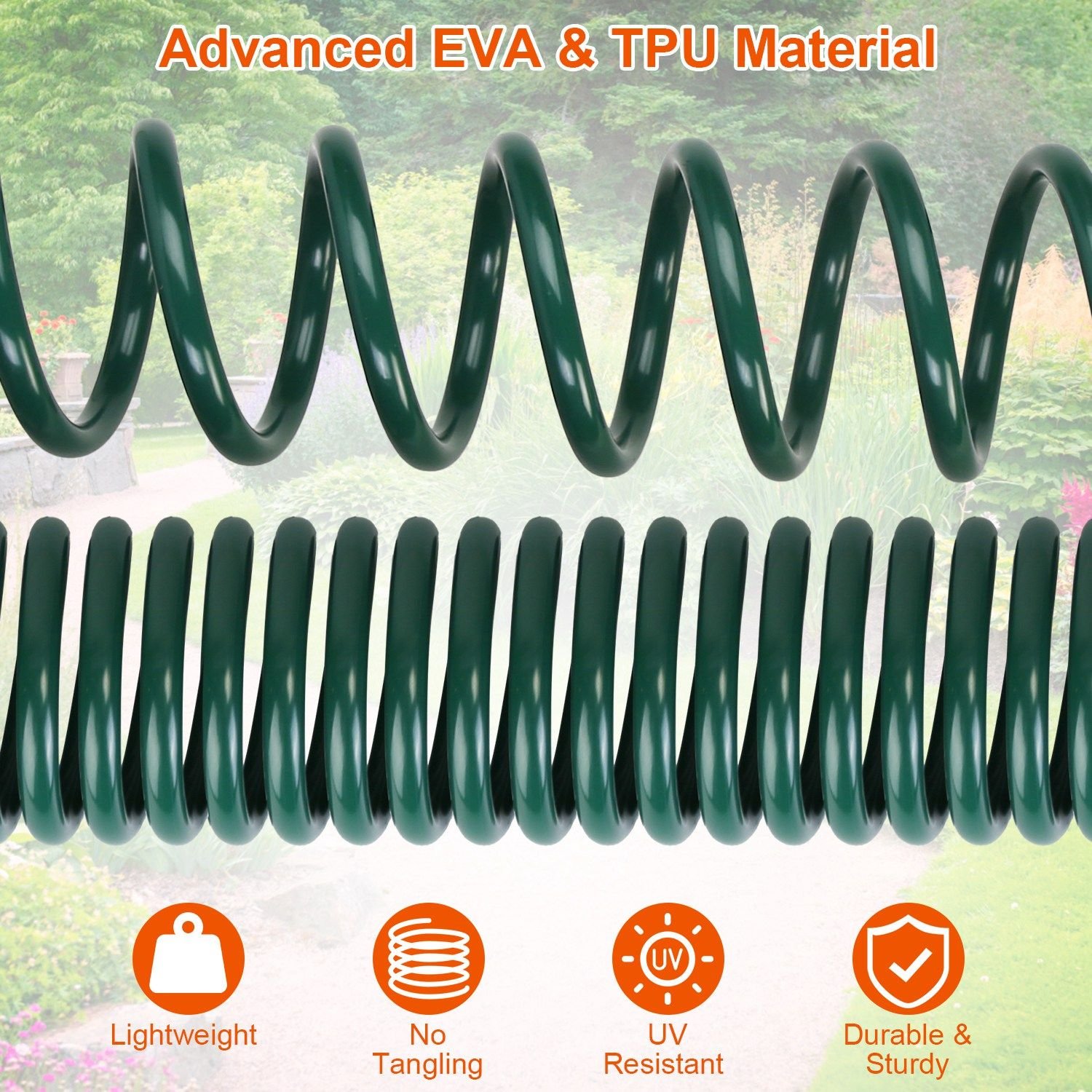*Lightweight & Durable*:Made from sturdy EVA and TPU material,the water hose is durable enough to withstand high water pressure and is UV resistant,doesn't get punctured easily.