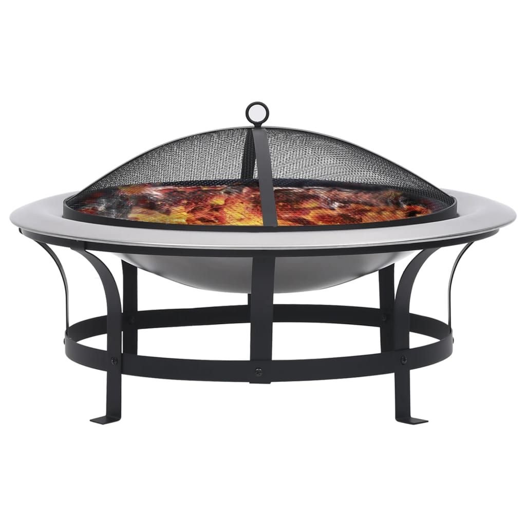 Outdoor Fire Pit with Grill Stainless Steel 29.9"