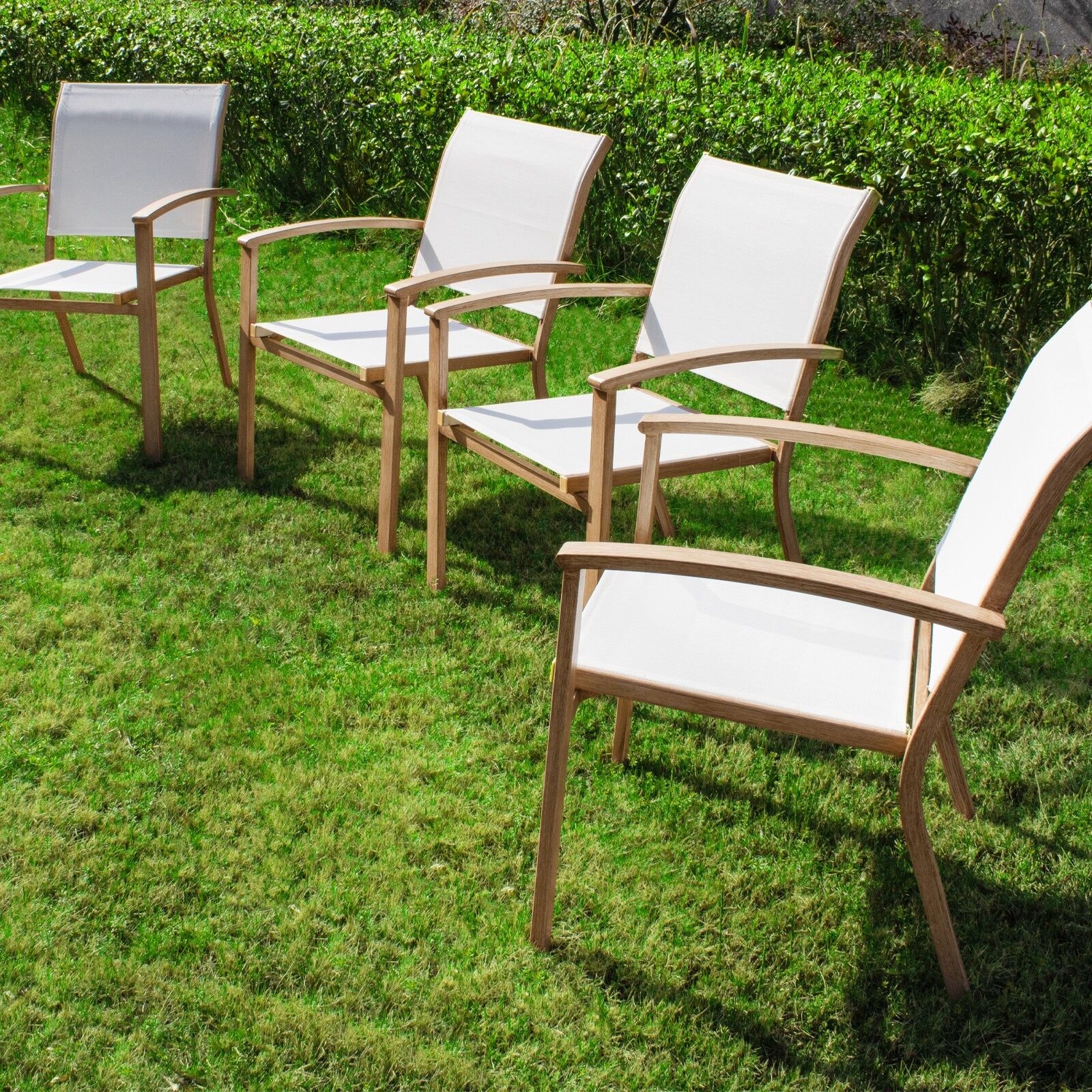 1. "Breathable Textilene Fabric": "Lightweight textilene mesh stays cool in heat, ideal for patio or poolside use. UV-resistant coating prevents fading."
